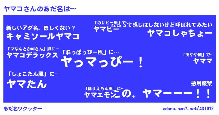 | ポケモン風あだ名 | 『ヤマゴンZ』『ヤマチュウ』『ヤーマイ』『ヤマコダネ』 |