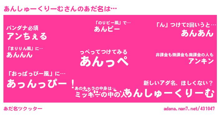 ↓あだ名「あんしゅーくりーむ」にコメントする!