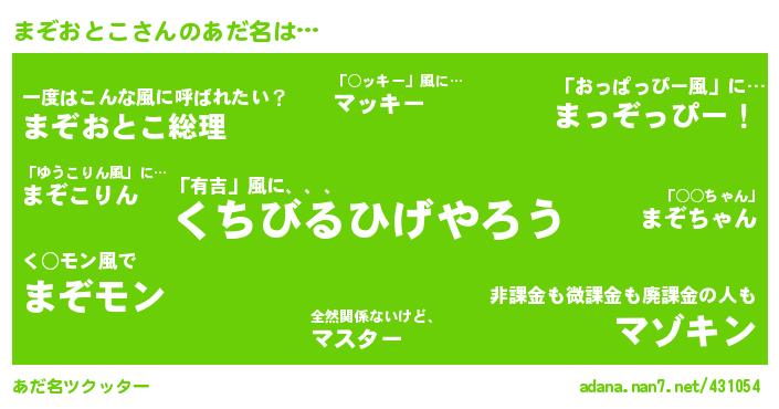 | ヘコむあだ名 | 『まぞふぇ~』『豆乳』『まぞぷりん』『まぞおとこ(小並感)』 |