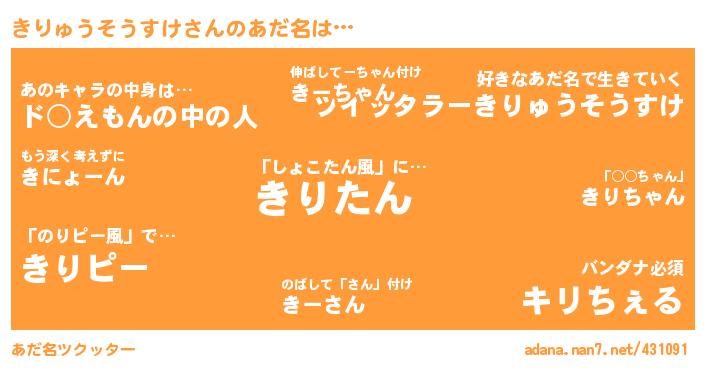きりゅうそうすけさんのあだ名を作成しました!