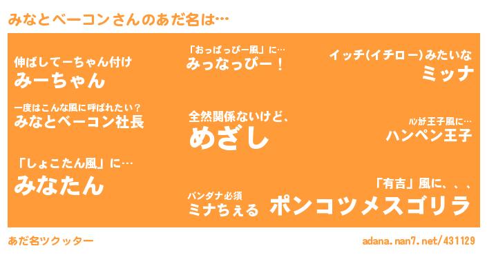 みなとベーコンさんのあだ名を作成しました!