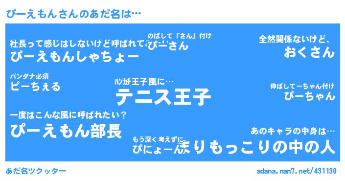 | ポケモン風あだ名 | 『ピーセウス』『ピーゴンZ』『ピーーイ』『ピーチュウ』 |