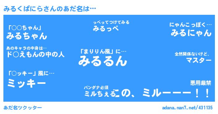 みるくばにらさんのあだ名を作成しました!