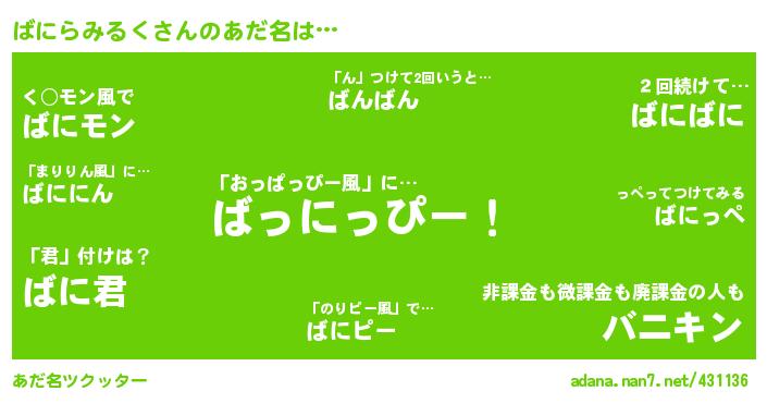 ばにらみるくさんのあだ名を作成しました!