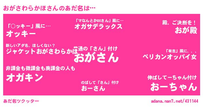 | 胡散臭い通販商品みたいなあだ名 | 『億万長者になれる水晶球…その名も「おがさわらかほ」』 |