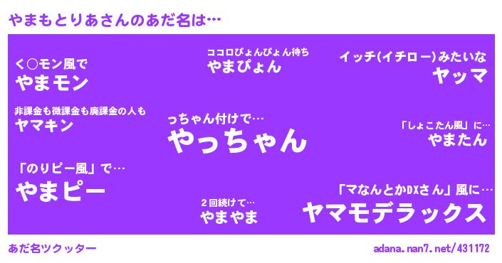 | ヒーロー風カッコイイあだ名 | 『スーパーヤマモトリア』『仮面ヤマダー』『サイバー戦士ヤマモトリア』 |