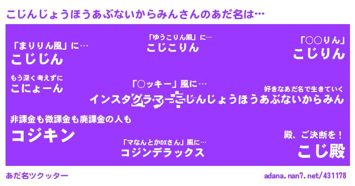 ↓あだ名「こじんじょうほうあぶないからみん」にコメントする!