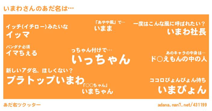| ポケモン風あだ名 | 『イマセウス』『イマキング』『イマワダネ』『メロイッマ』 |