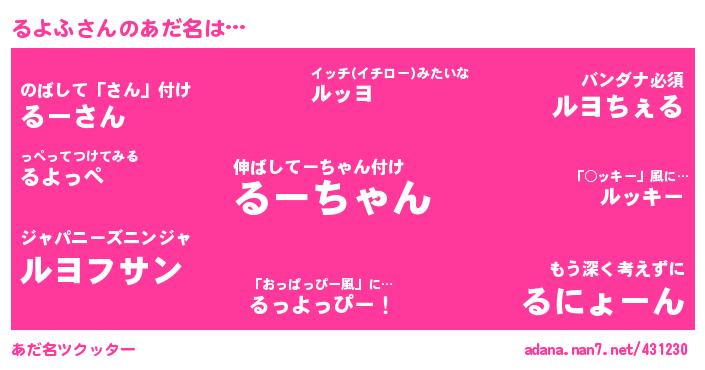 | ヒーロー風カッコイイあだ名 | 『ネオルヨフ』『友情の使者るよふ』『スーパールヨフ』 |
