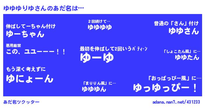 ↓あだ名「ゆゆゆりゆ」にコメントする!