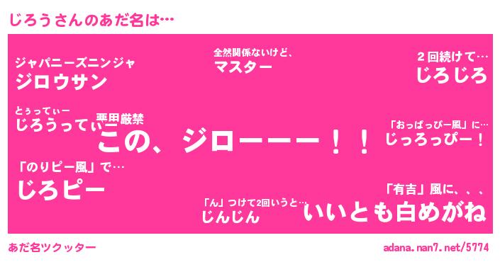 | ヒーロー風カッコイイあだ名 | 『ネオジロウ』『ウルトラ戦士ジロウ』『慈愛の使者じろう』 |