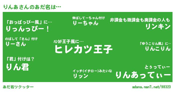 | ポケモン風あだ名 | 『ヒリンア』『メロリッン』『リンアダネ』『リンゴンZ』 |