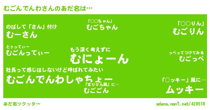 | 男性向けラノベタイトル風あだ名 | 『ノーゲーム・ノークイアー』『冴えないくいあーの育てかた』 |