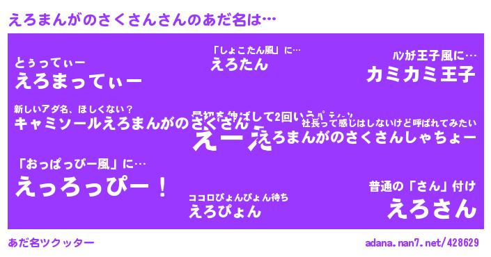 | 2回繰り返すあだ名 | 『もみもみ』『おやおや』『ぷんぷん』『わきわき』『ぎすぎす』 |