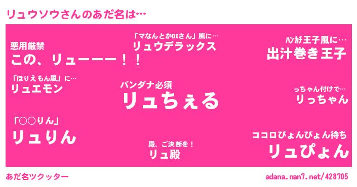 | ファンタジー風あだ名 | 『ゼャュトゥ』『クインャット』『ャュディッシュ』 |
