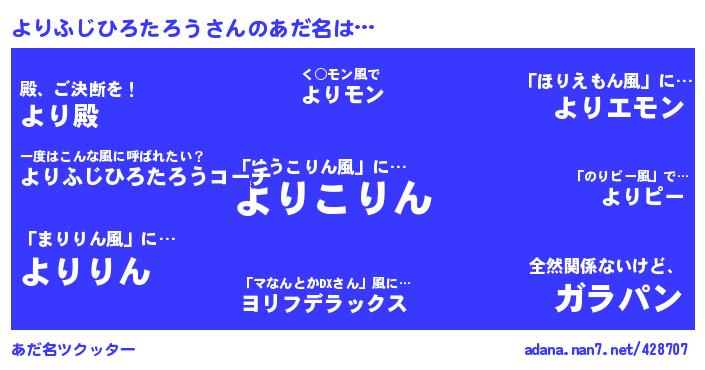 | ヘコむあだ名 | 『わーふぇ~』『豆乳』『わーぷりん』『わーはくたく(小並感)』 |