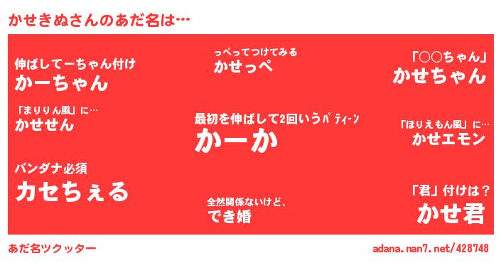| ポケモン風あだ名 | 『ワーセウス』『ゼニワー』『メロワッー』『ワックウザ』 |