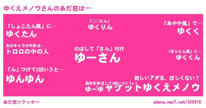 | 2回繰り返すあだ名 | 『ツツユユ』『しゃなりしゃなり』『わいわい』『にょろにょろ』 |