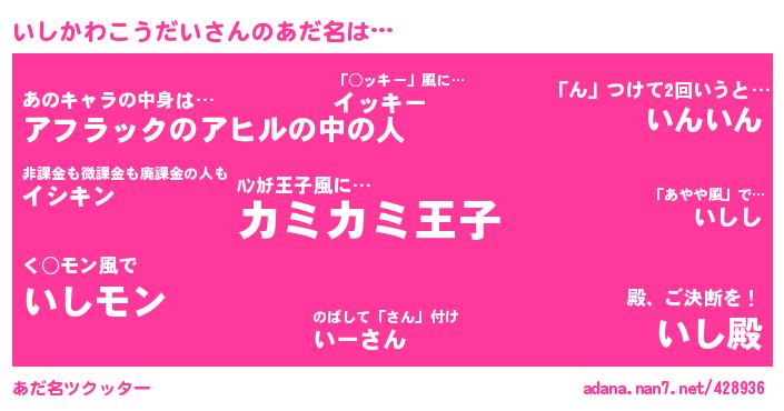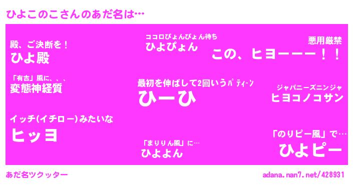 | ピコ太郎風あだ名 | 『ピツ二郎』『ツユ六郎』『ピコツ郎』『ツツ太郎』『ツコ次郎』 |