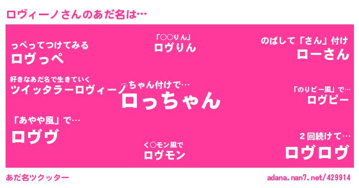 | ヘコむあだ名 | 『ロヴふぇ~』『豆乳』『ロヴぷりん』『ロヴィーノ(小並感)』 |