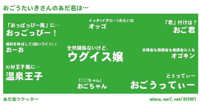 | 2回繰り返すあだ名 | 『リリトト』『むらむら』『にゃーにゃー』『わきわき』 |
