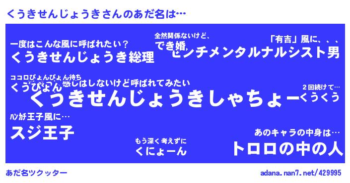 | 肩書あだ名 | 『くうきせんじょうき閣下』『くうきせんじょうき国家主席』 |