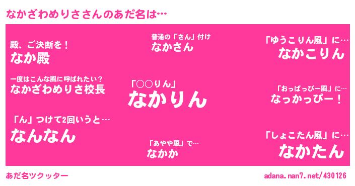 たとえば“なかざわめりさ”さんがあだ名になると・・・