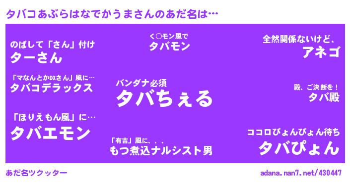 たとえば“タバコあぶらはなでかうま”さんがあだ名になると・・・