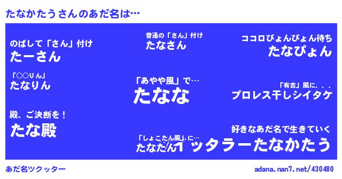 たとえば“たなかたう”さんがあだ名になると・・・