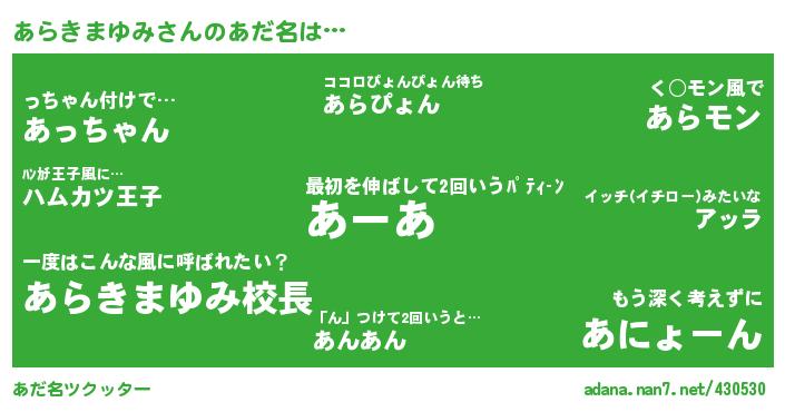 たとえば“あらきまゆみ”さんがあだ名になると・・・