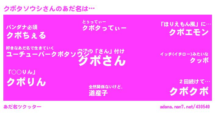 | ヘコむあだ名 | 『ばぶふぇ~』『豆乳』『ばぶぷりん』『ばぶぇす(小並感)』 |