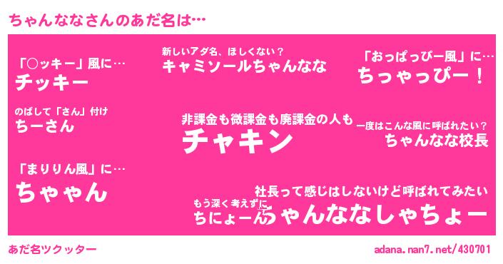 たとえば“ちゃんなな”さんがあだ名になると・・・
