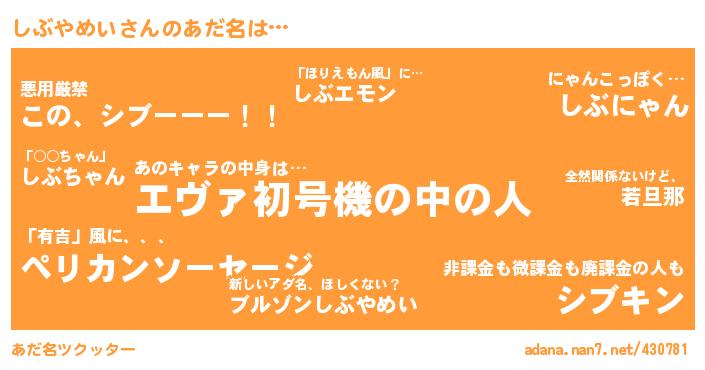 | ヘコむあだ名 | 『しのふぇ~』『豆乳』『しのぷりん』『しのうた(小並感)』 |