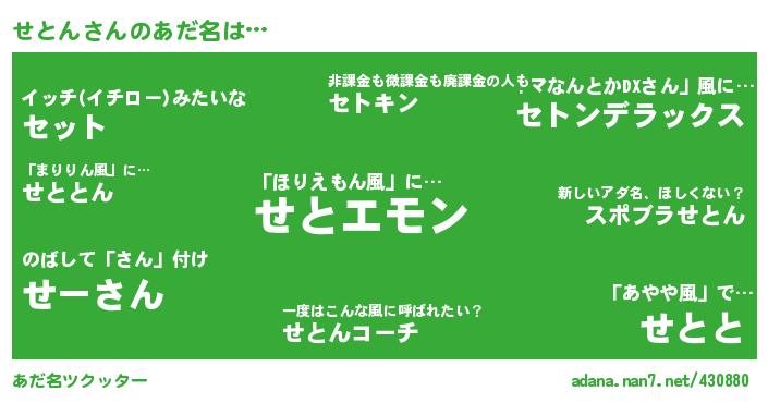 | 2回繰り返すあだ名 | 『ねちねち』『しゃなりしゃなり』『わいわい』『てかてか』 |