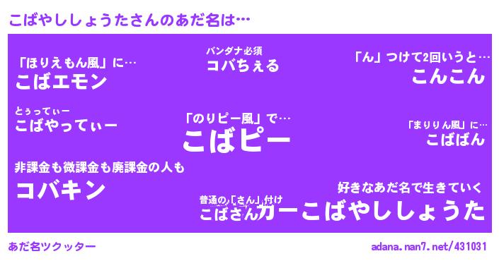 | 胡散臭い通販商品みたいなあだ名 | 『前代未聞の健康食品…その名も「たまなさかはたみ」』 |