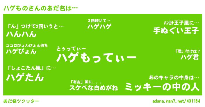 | 意味不明あだ名 | 『住所不定無職ほんみょうが(40歳)』『たけのこ科ほんみょうが属』 |