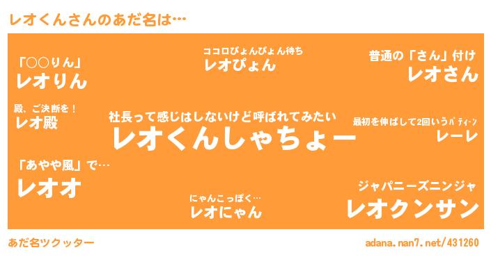 | 2回繰り返すあだ名 | 『ぽつぽつ』『れんれん』『しょりしょり』『グレグレ』 |