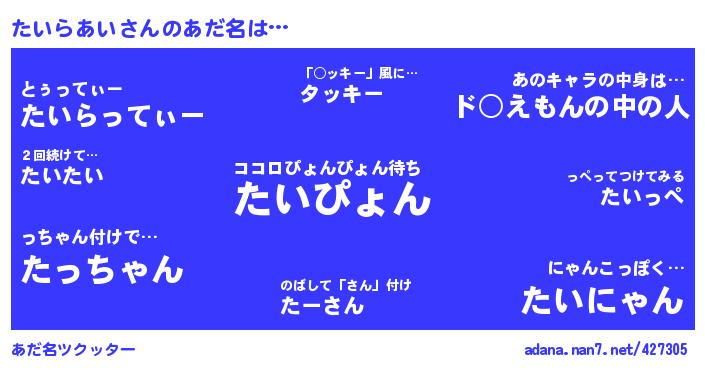 | ピコ太郎風あだ名 | 『セコ二郎』『セッ六郎』『ピセ四郎』『ピコセ郎』『セセ太郎』 |