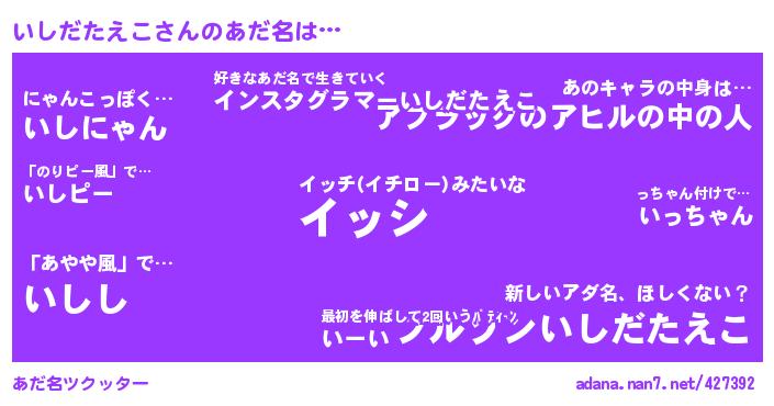 | ポケモン風あだ名 | 『ヒイシダタエコ』『イックウザ』『ゼニイシ』『イシセウス』 |