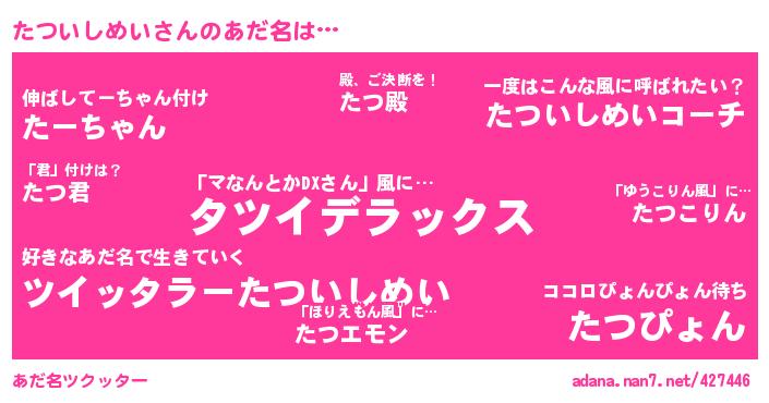 | ヘコむあだ名 | 『アメふぇ~』『豆乳』『アメぷりん』『アメちゃん(小並感)』 |