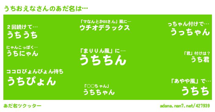 | 2回繰り返すあだ名 | 『たかたか』『しゃなりしゃなり』『わいわい』『てかてか』 |