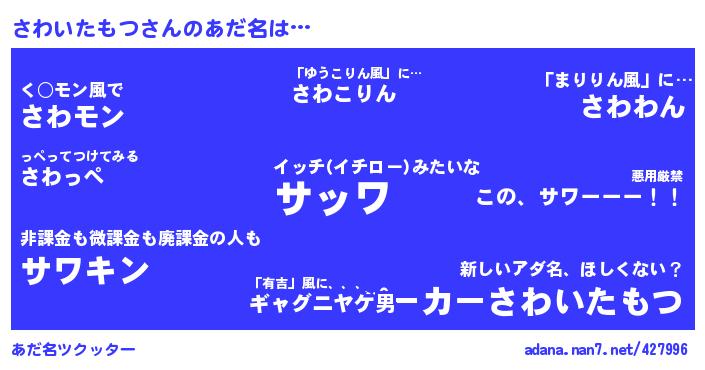 たとえば“さわいたもつ”さんがあだ名になると・・・