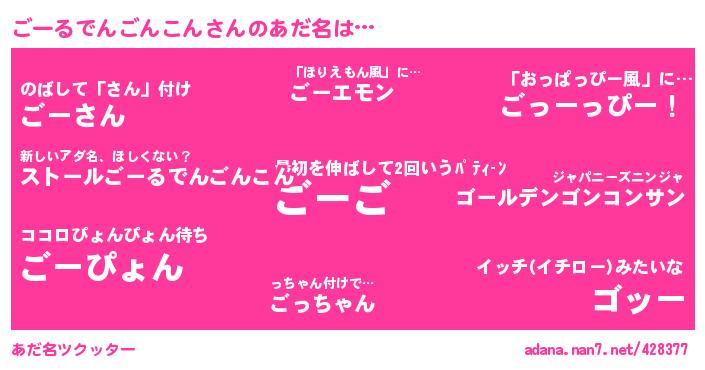 たとえば“ごーるでんごんこん”さんがあだ名になると・・・