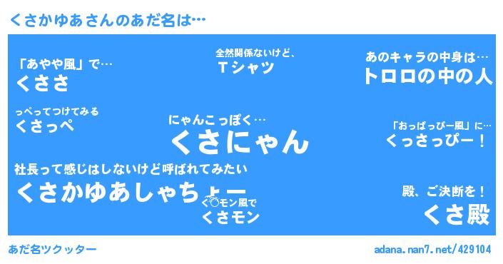 たとえば“くさかゆあ”さんがあだ名になると・・・