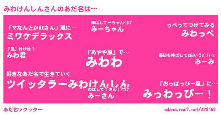 | ポケモン風あだ名 | 『ミワセウス』『ミワチュウ』『ミワケダネ』『ゼニミワ』 |