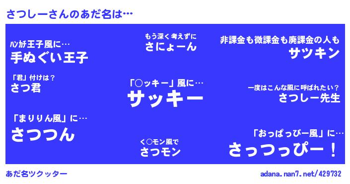 | ピコ太郎風あだ名 | 『ピコム郎』『ピム六郎』『ムコ四郎』『ムム太郎』『ムダ次郎』 |