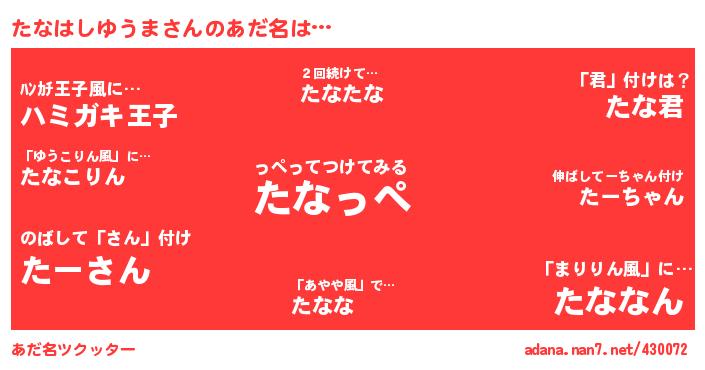 | 2回繰り返すあだ名 | 『おおまま』『おまおま』『にゃーにゃー』『てかてか』 |