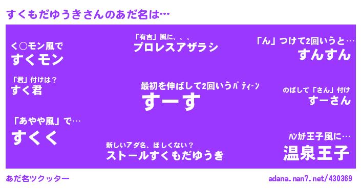 たとえば“すくもだゆうき”さんがあだ名になると・・・