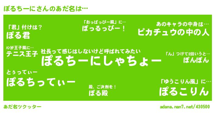 | ピコ太郎風あだ名 | 『ピユ二郎』『ユコ六郎』『ユヅ四郎』『ピコユ郎』『ユユ太郎』 |