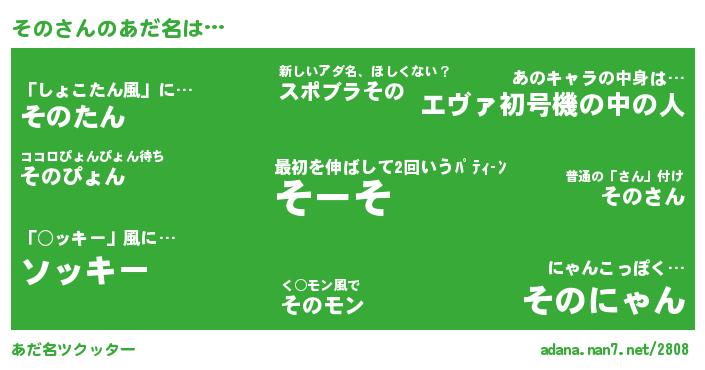 | ポケモン風あだ名 | 『ソーノイ』『ソックウザ』『ソノセウス』『ヒソノ』 |